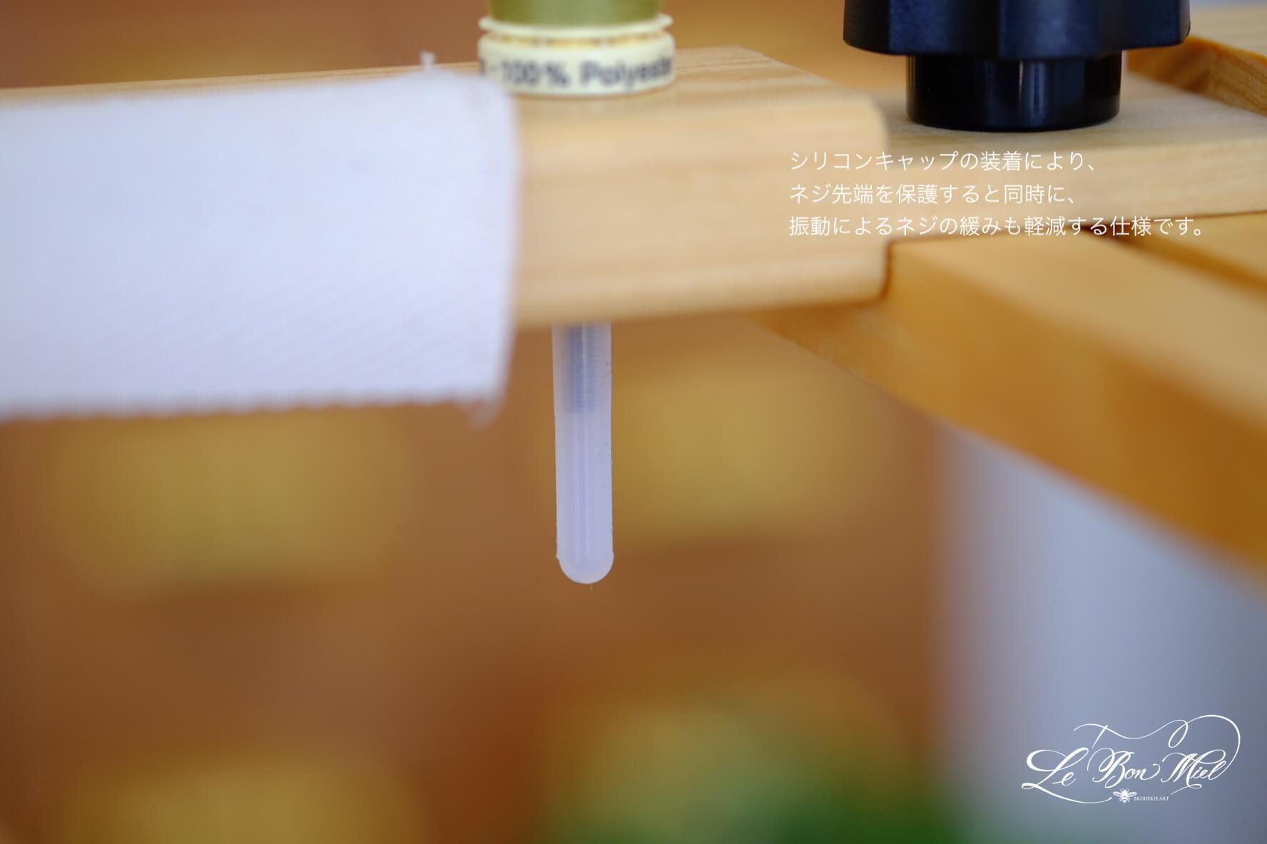 *シリコンキャップは、さまざまな刺繍枠の厚みに対応できるよう、余裕を持たせた長さで付属しています。